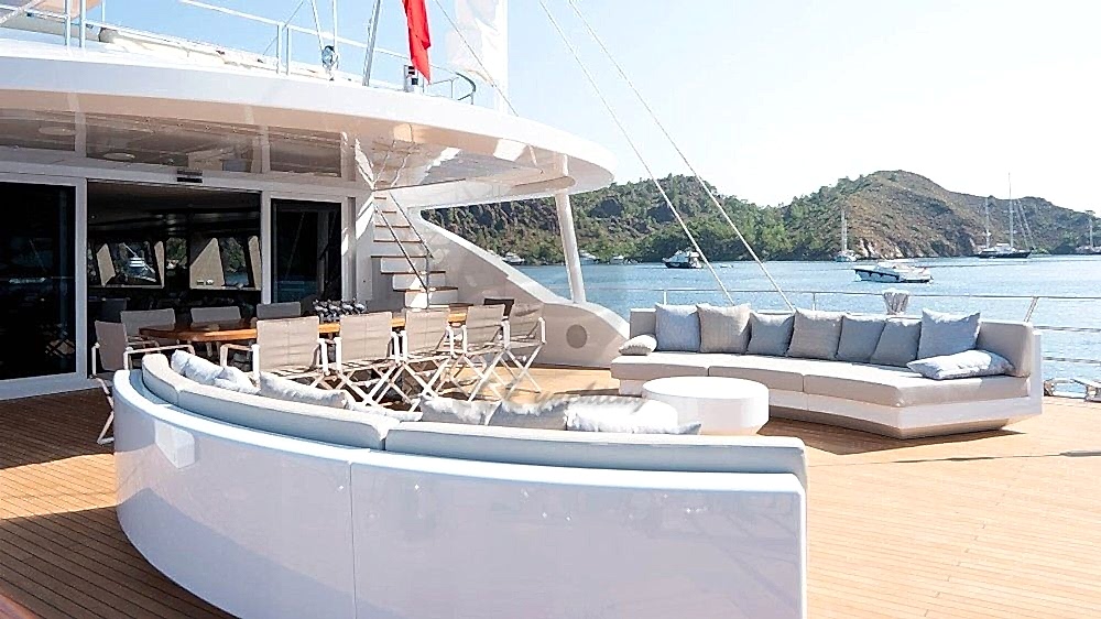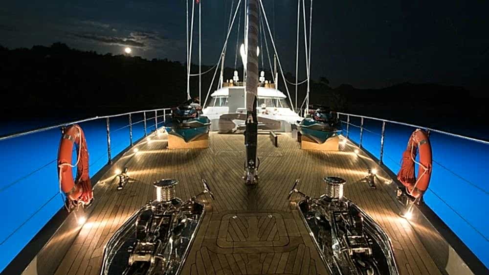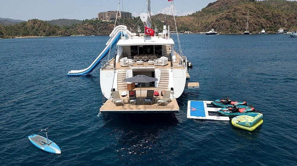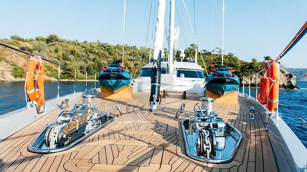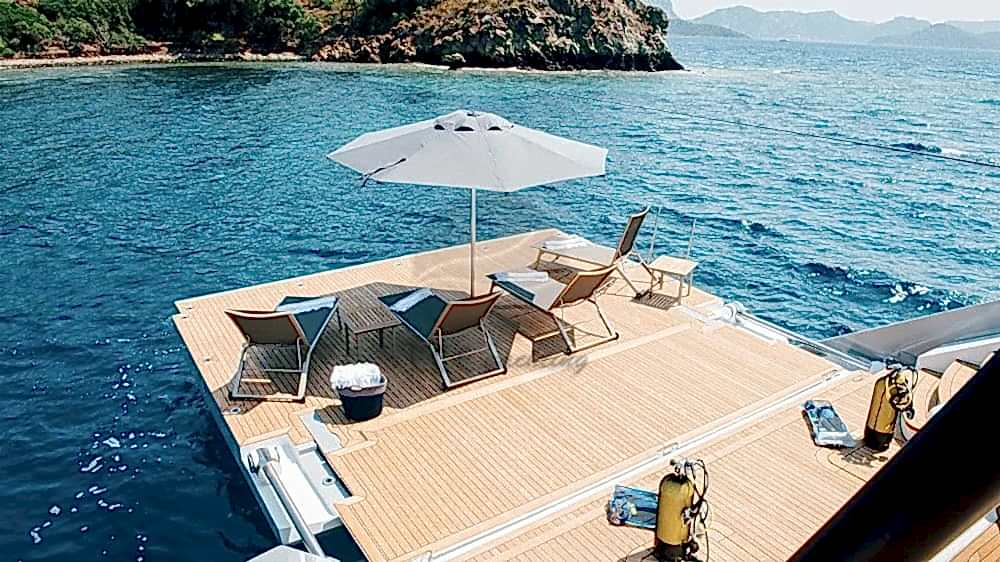 Şnorkel ekipmanları, Balık tutma malzemeleri, Güneş tenteleri, Güneş yatakları, Güvertede duş, Deniz merdiveni