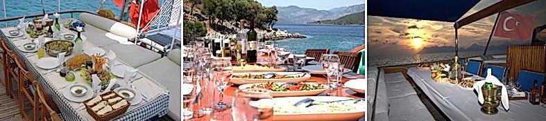 Bütün yiyecek ye içecekler teknemizdeki aşçımız tarafından sizlerin damak tadı ve alışkanlıkları göz önüne alınarak hazırlanır ve servis yapılır.